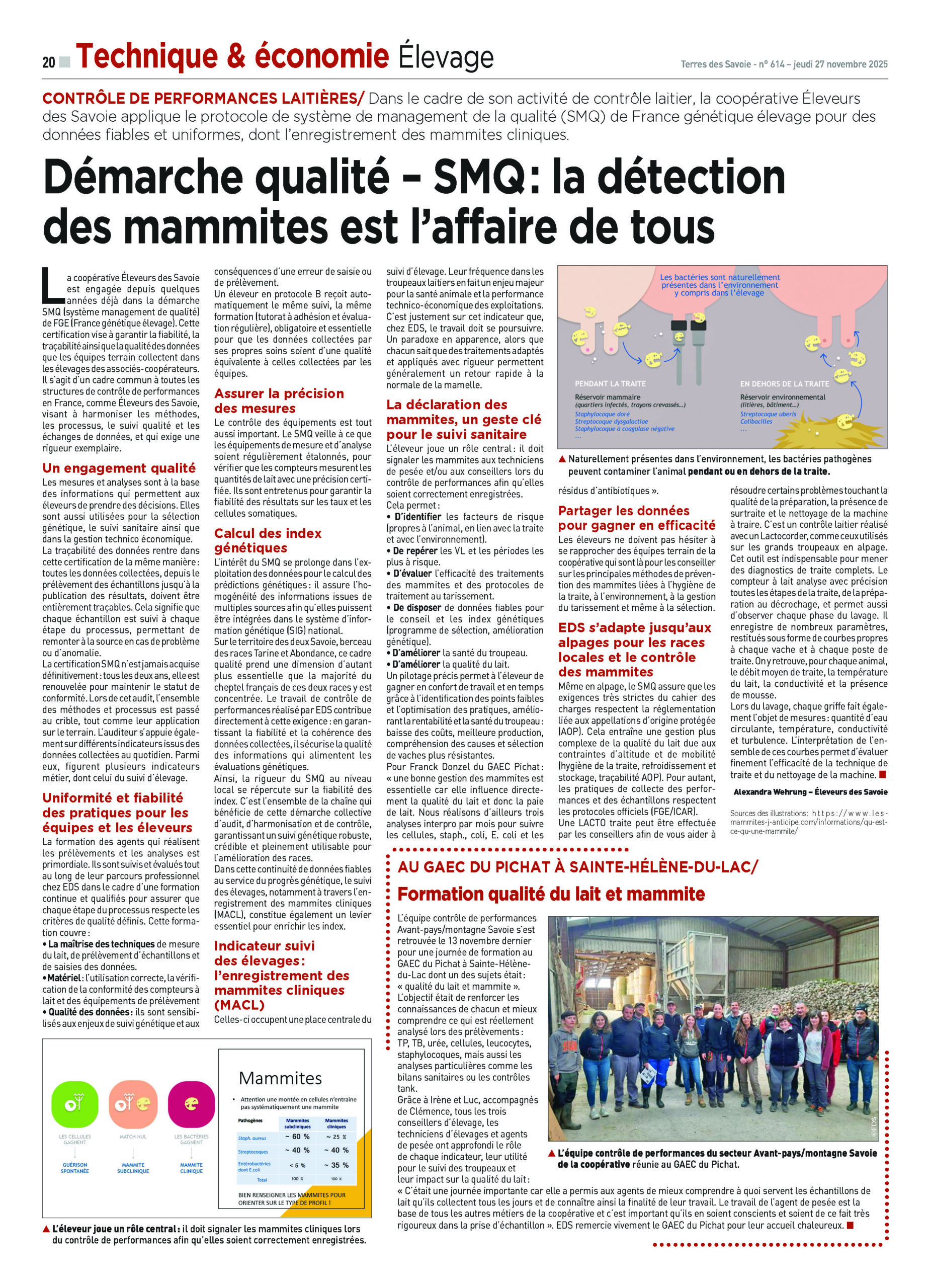 Dans le cadre de son activité de contrôle laitier, la coopérative Éleveurs des Savoie applique le protocole de système de management de la qualité (SMQ) de France Génétique Élevage pour des données fiables et uniformes, dont l’enregistrement des mammites cliniques.