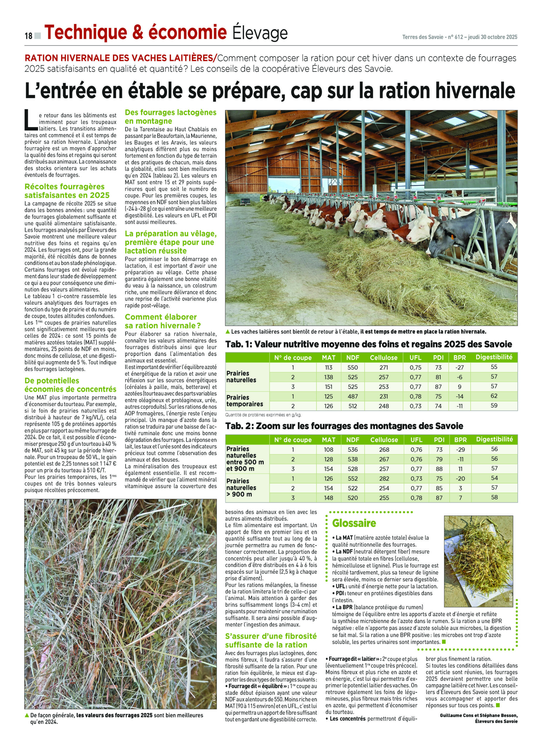 Comment composer la ration pour cet hiver dans un contexte de fourrages 2025 satisfaisants en qualité et quantité ? Les conseils de la coopérative Éleveurs des Savoie.
