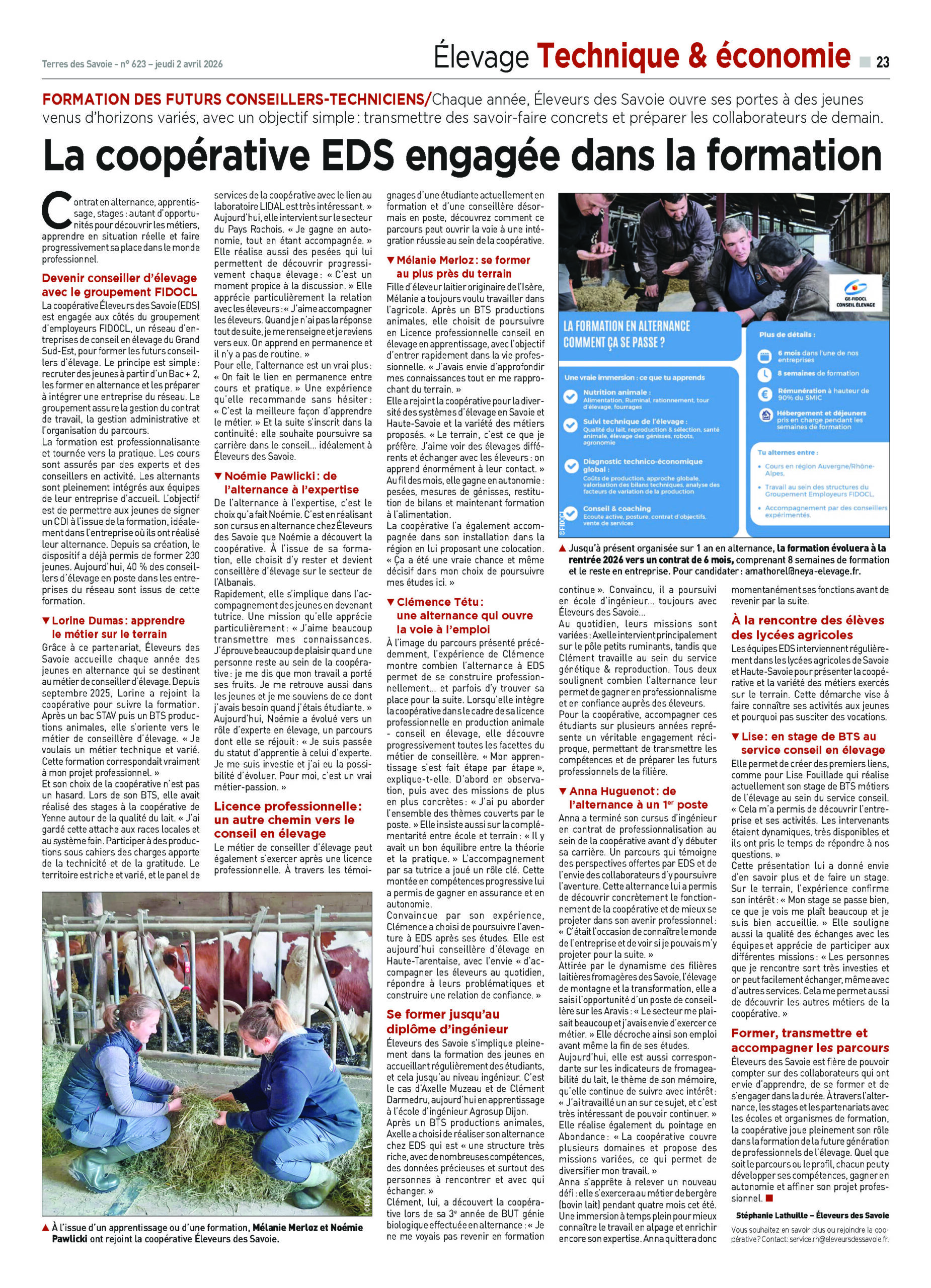 FORMATION DES FUTURS CONSEILLERS-TECHNICIENS : Chaque année, Éleveurs des Savoie ouvre ses portes à des jeunes venus d’horizons variés, avec un objectif simple : transmettre des savoir-faire concrets et préparer les collaborateurs de demain.