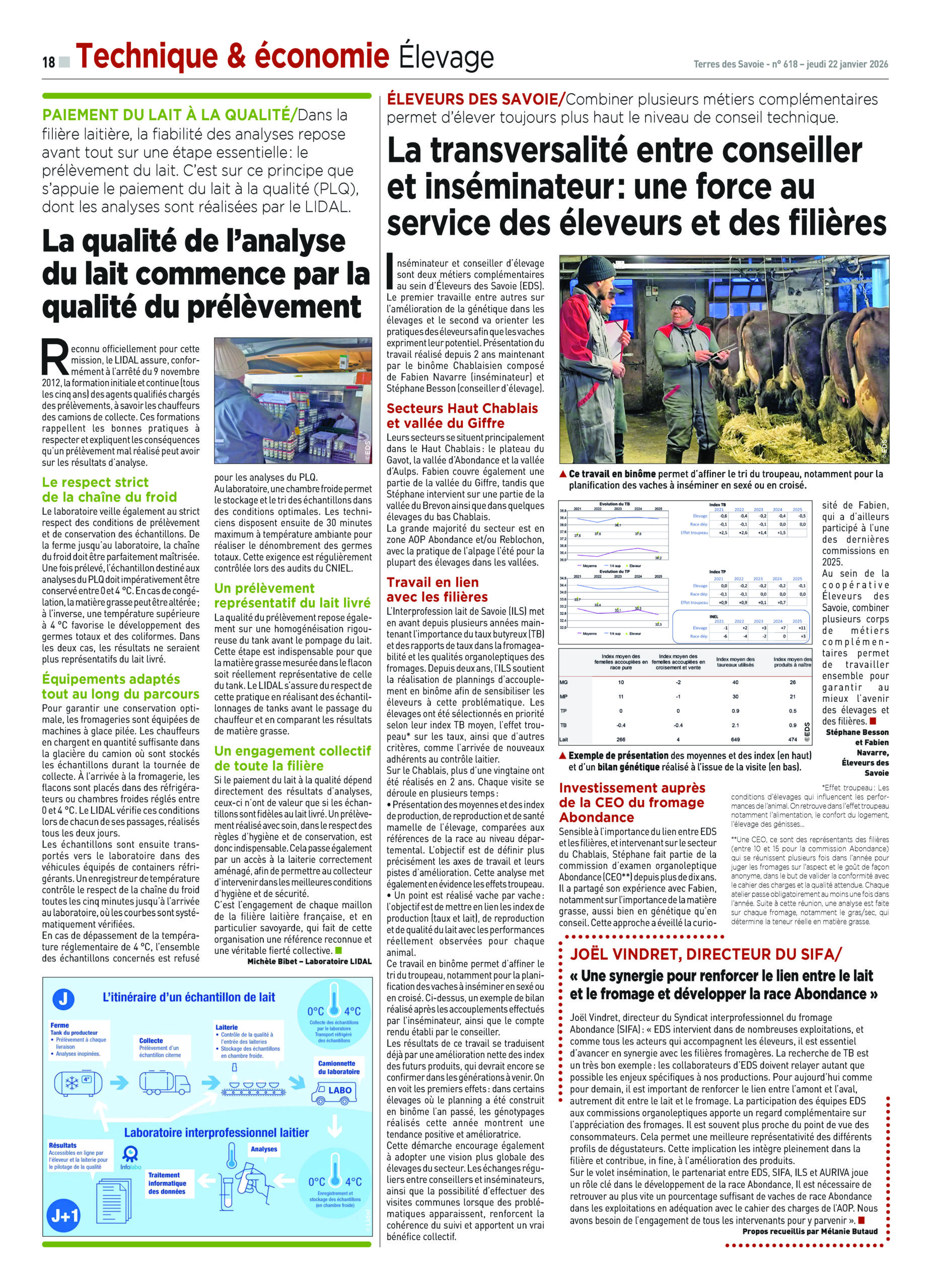 Inséminateur et conseiller d’élevage sont deux métiers complémentaires au sein d’Éleveurs des Savoie. Le premier travaille entre autres sur l’amélioration de la génétique dans les élevages et le second va orienter les pratiques des éleveurs afin que les vaches expriment leur potentiel. Présentation du travail réalisé depuis 2 ans maintenant par le binôme Chablaisien composé de Fabien Navarre et Stéphane Besson.